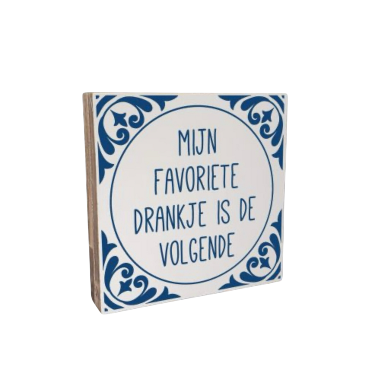 Woodart Tekstblok Mijn favoriete drankje is de volgende delfs blauw 18x18