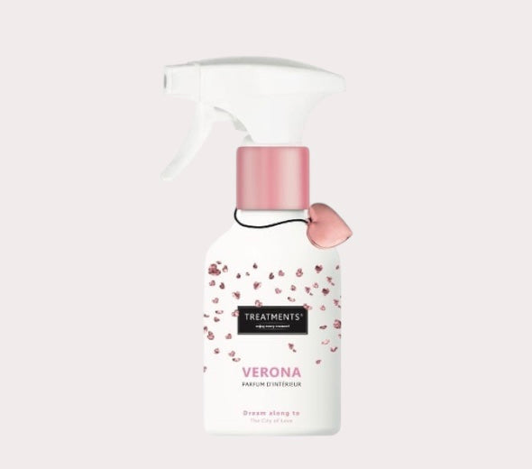Transformeer uw huis in een oase van geur en stijl met de exclusief geparfumeerde Verona Parfum d’Intérieur van Treatments®. Met de zorgvuldig samengestelde geurformule, creëert u onmiddellijk precies díe unieke ambiance, die perfect aansluit bij uw persoonlijkheid, uw humeur of de uitstraling van uw interieur. Met slechts een enkele nevel hier en daar, neemt de verfijnde geurcombinatie van framboos, rozenblaadjes, roze peperkorreltjes en amber uw zintuigen mee op een heerlijke droomreis naar het romantische Verona.
