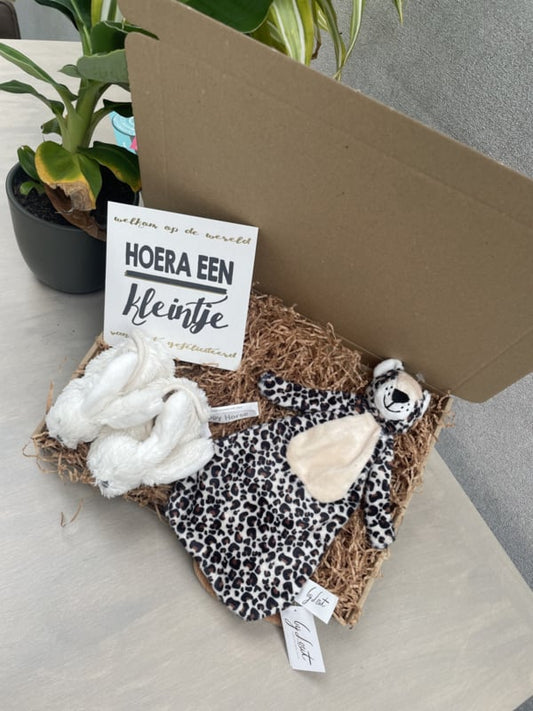 Happy Horse X Leopard Lou Gift Set White Slippers + Cuddle Cloth