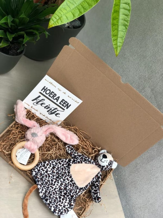 Happy Horse X Leopard Lou Gift Set Old Pink Teething Ring + Cuddle Cloth