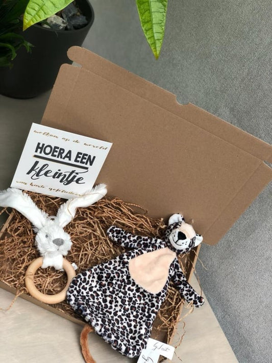 Happy Horse X Leopard Lou Gift Set White Teething Ring + Cuddle Cloth