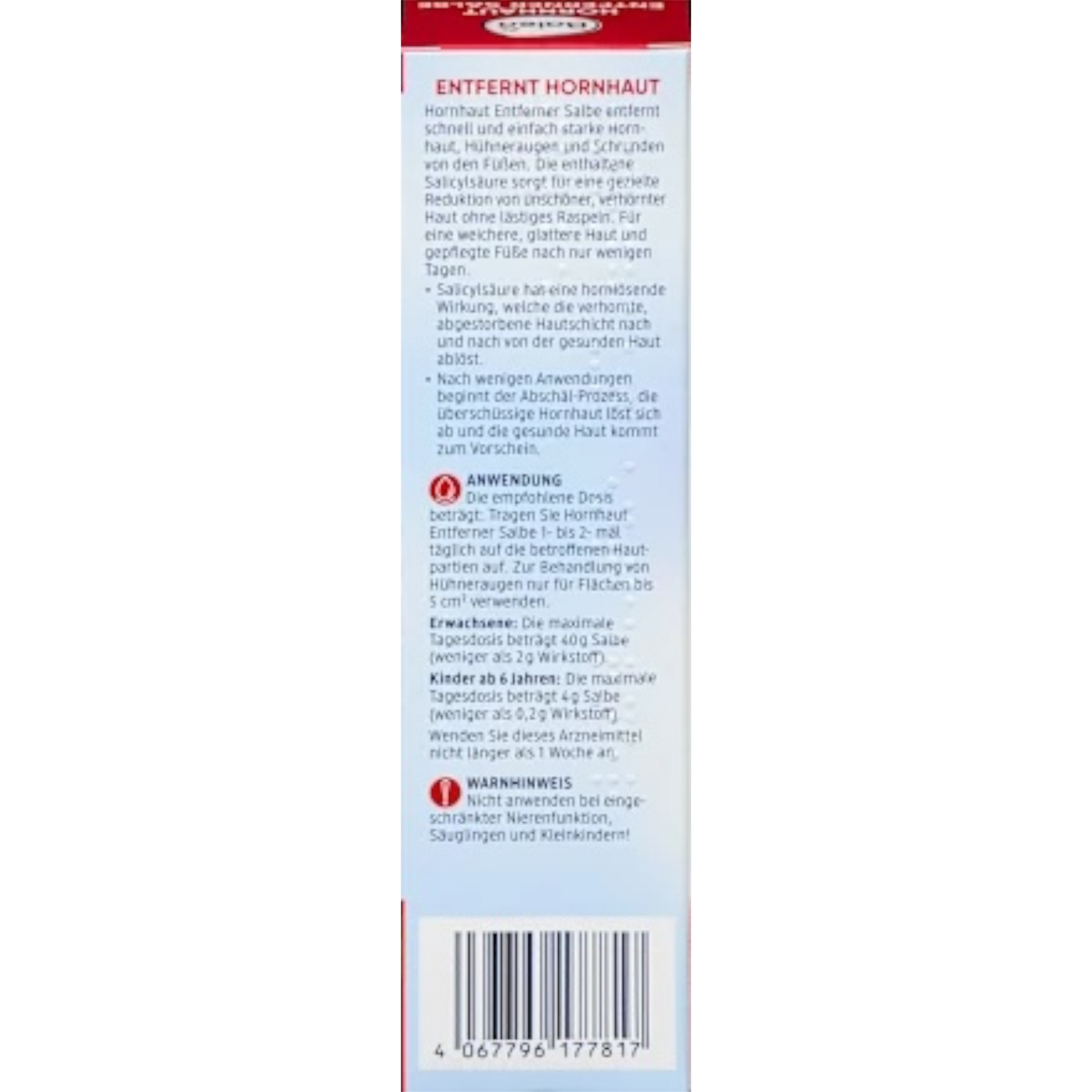 De Balea Voetcrème Eeltverwijderaar Zalf kan een effectief hulpmiddel zijn bij het verwijderen van overmatige eeltplekken, likdoorns en eeltplekken. Deze zalf, samengesteld met 5% salicylzuur, kan eelt gericht verminderen zonder te hoeven raspen. Het kan ook drukpijn verlichten en doorligwonden verminderen. De zalf is speciaal ontwikkeld voor de zwaar vereelte huid en kan de voeten al na enkele toepassingen zachter en gladder maken. Het salicylzuur ondersteunt het natuurlijke exfoliatieproces van de huid.