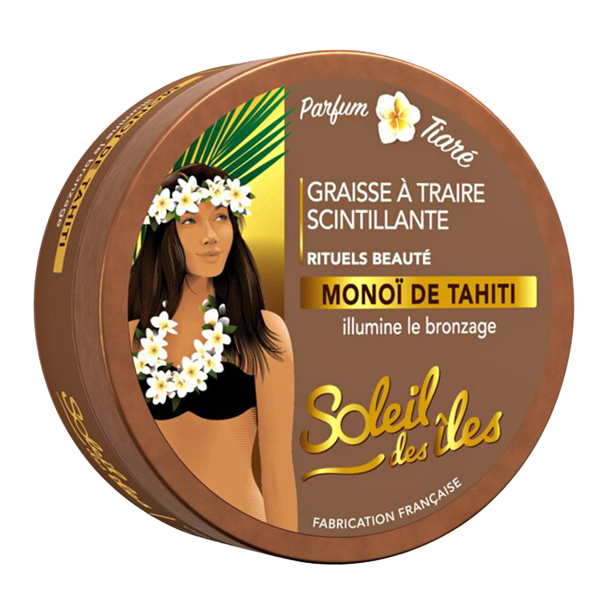Soleil des îles Tiaré Fragrance Sparkling Milk Fat 150 ml is a care enriched with tan brightener, Tahitian Monoi and fine, glittering gold pearls. This body treatment illuminates and strengthens your tan, both during the day and in the evening.