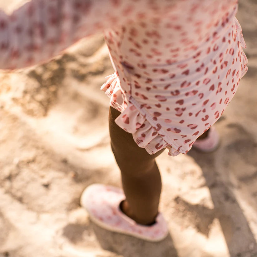 Let your little one play stylishly and safely with our Water Shoes Old pink Panther Print! The striking leopard print adds a playful touch to your child's summer adventures, while the non-slip sole provides optimal protection. Made from flexible elastane, these water shoes dry quickly, so they are always ready for the next adventure!