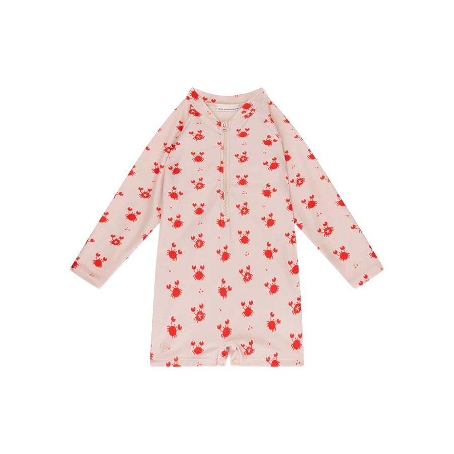 Op zoek naar een zwempak dat zowel leuk als functioneel is? Dit zwempak met lange mouwen in de Oh Crab print combineert een speelse look met serieuze bescherming. Dankzij de UV-werende stof is je kleintje veilig tegen schadelijke zonnestralen, of hij nu in de branding speelt of zandkastelen bouwt!Het zwempak is gemaakt van een lichtgewicht, sneldrogend materiaal dat ademend is, waardoor je kind zich de hele dag comfortabel voelt. De lange mouwen bieden extra bescherming, zodat hij zorgeloos kan genieten van zomerse avonturen.Waarom dit zwempak een must-have is:• Vrolijke Oh Crab print voor een speelse look• Bescherming tegen UV-straling• Ademend en sneldrogend voor comfort in en uit het water• Gemaakt van gerecycled materiaalMet dit zwempak is je kleine waterrat klaar voor een dag vol plezier!
