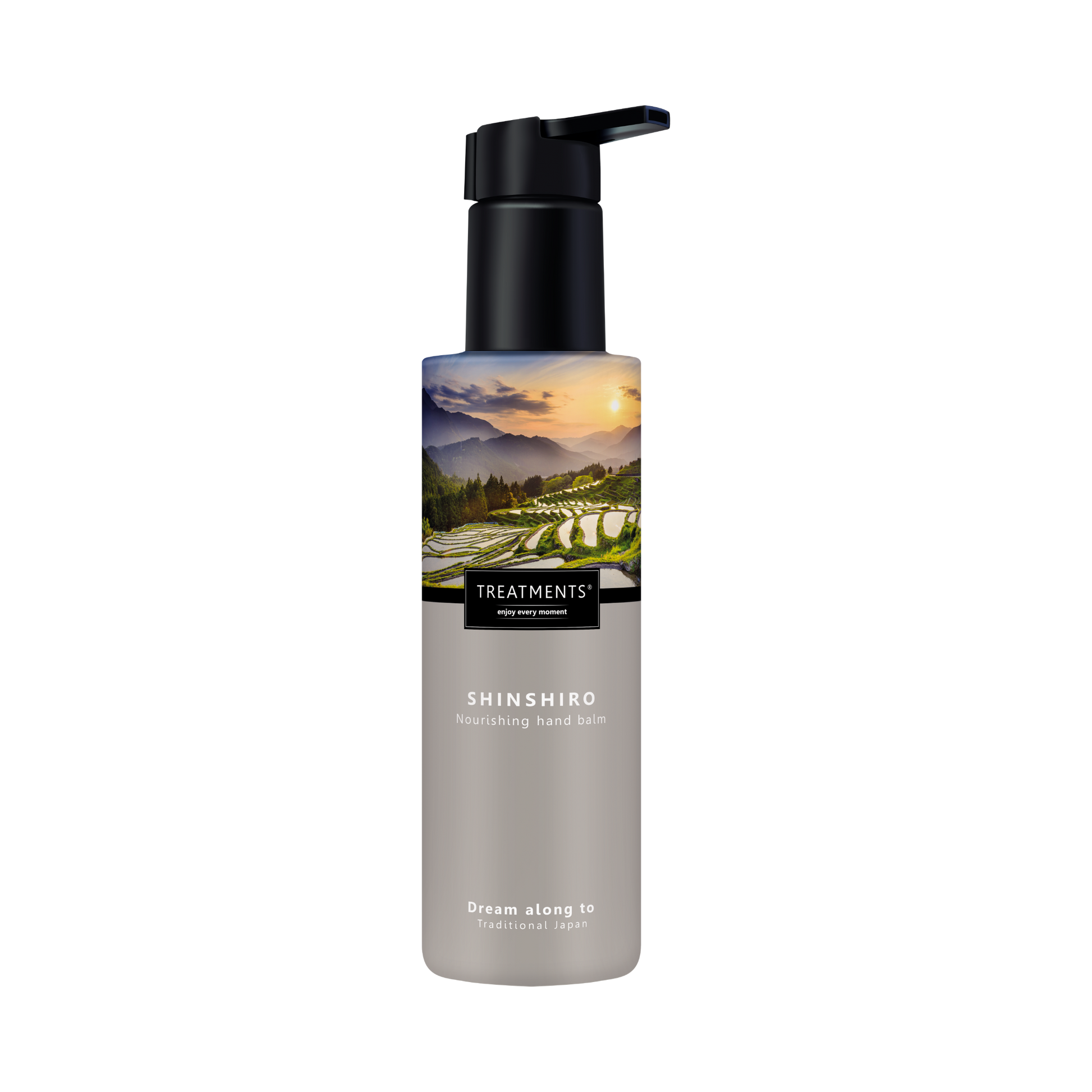 The hilly region of Shinshiro is known for its many rice terraces. Several times a year the rice fields bloom and the small white flowers fill the air with a sweet vanilla-like scent. Treatments ® has used tonka beans as a base note, supplemented with sweet and fresh scents such as ylang ylang, rose and white lily to bring to life the overwhelming scent of the small rice blossoms from Japan in its products.