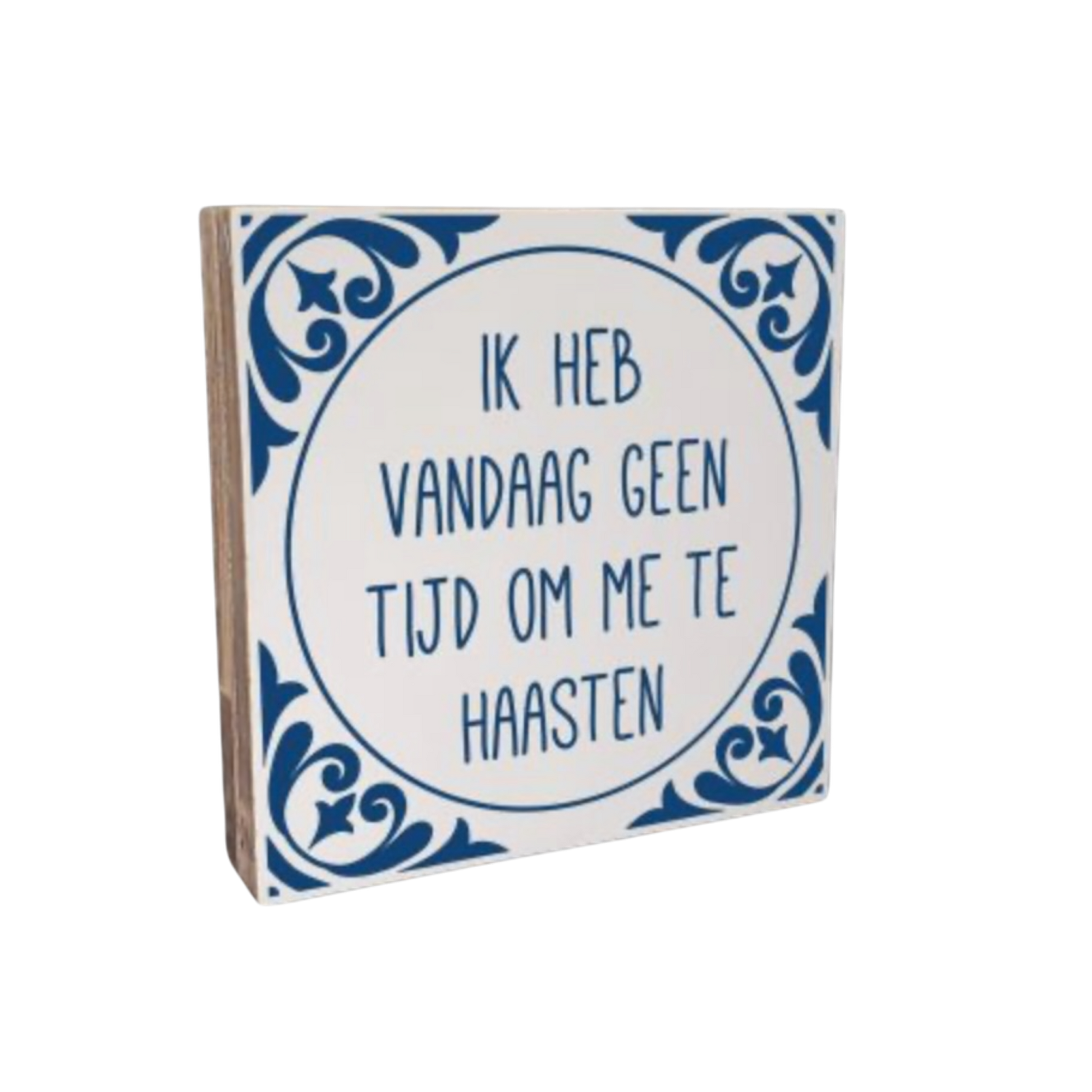 Woodart Tekstblok vandaag geen tijd om te haasten (delfts blauw) 18x18