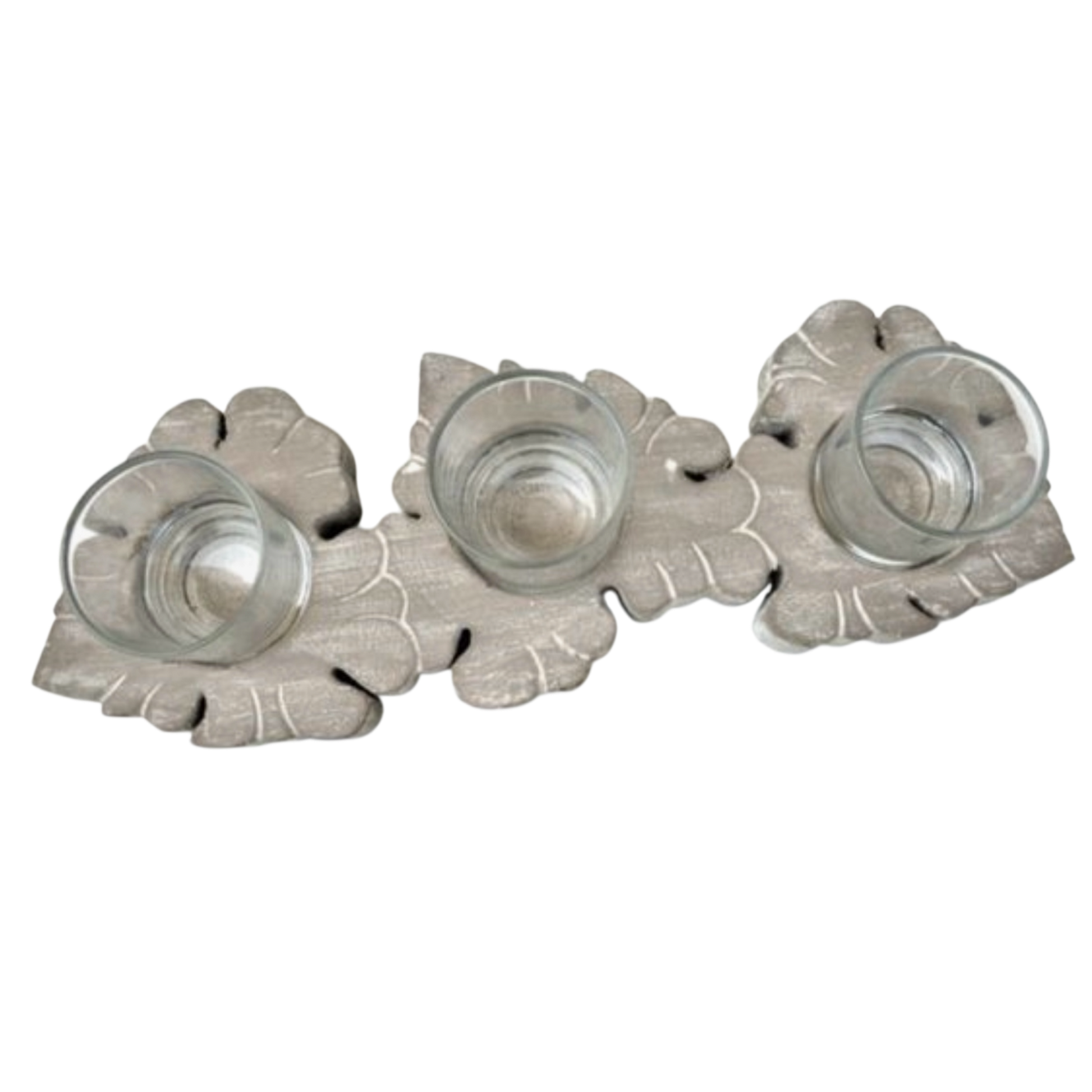 Waxine houder in de kleur taup incl glaasjes en waxinelichtjes