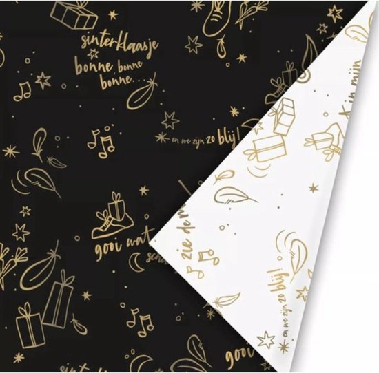 Collectiv Warehouse dubbelzijdig inpakpapier Sing along sint zwart