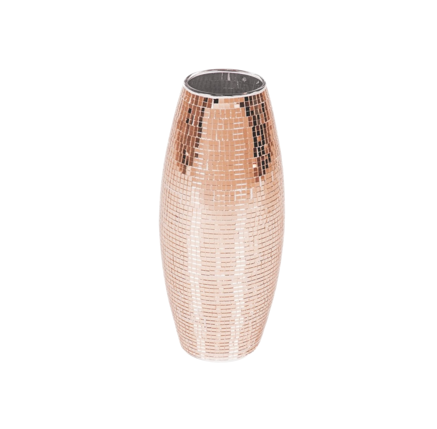 Op zoek naar een bloemen vaas die jouw interieur laat stralen? De Disco vaas in rosegoud is de perfecte keuze! Met zijn glinsterende disco glitters en glazen materiaal zorgt deze vaas voor een feestelijke touch in huis. Geen gedoe meer met DIY projecten, deze 12,5x12,5x30cm vaas brengt direct glamour in jouw ruimte. Laat jouw bloemen schitteren in deze eyecatcher!