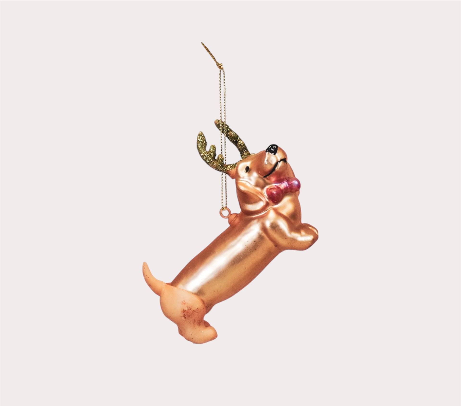 De speelsheid van een teckel met een twist van kerst in een kerstbal