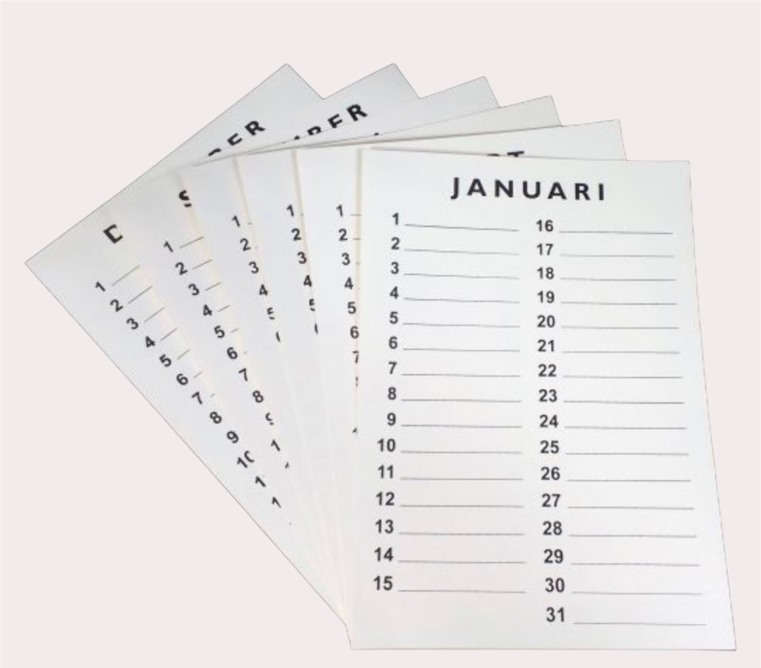 Kalenderbladen voor de 28 cm kalender of 35 cm kalender