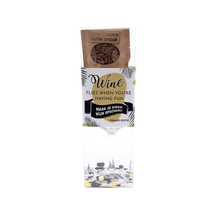 Inhoud: 3 verschillende Franse smaken, wijnglas en filterzakjes.