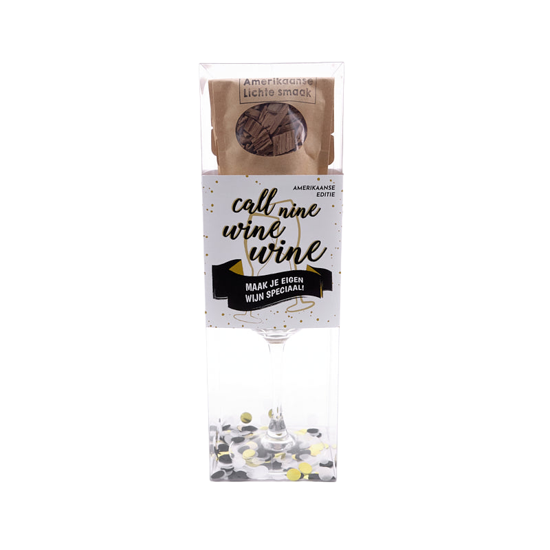 Inhoud: 3 verschillende Amerikaanse smaken, wijnglas en filterzakjes