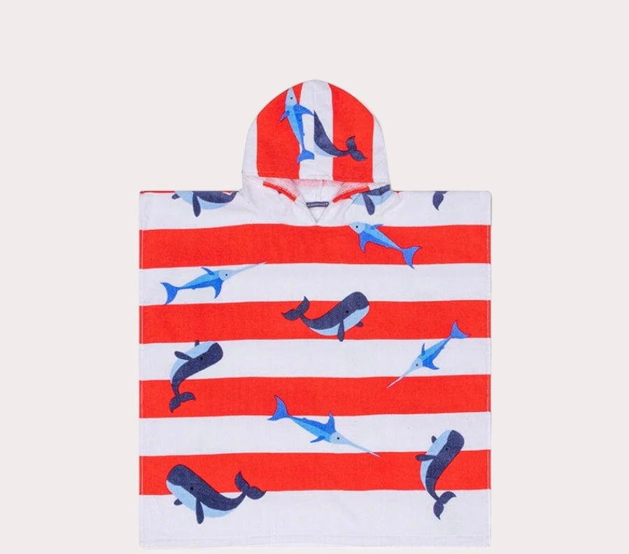 Onze zomerse Strandponcho Walvissen Rood/Wit zal zeker de aandacht trekken van je kids deze zomer! Gemaakt van katoen, is deze poncho zacht en comfortabel. Met een afmeting van 65 x 65 cm is het de ideale maat voor je kleintje
