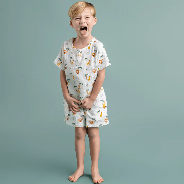 Het shirt en de bijpassende broek vormen samen een set perfect voor alle zomeractiviteiten deze zomer. Of je naar het strand gaat, lekker de stad in of besluit te gaan wandelen in het park, met de Strand Jumpsuit Set Jungle zit je kleintje er altijd comfortabel bij. Het is ontworpen om gemakkelijk te bewegen, zodat actieve kinderen vrij kunnen spelen zonder beperkingen.